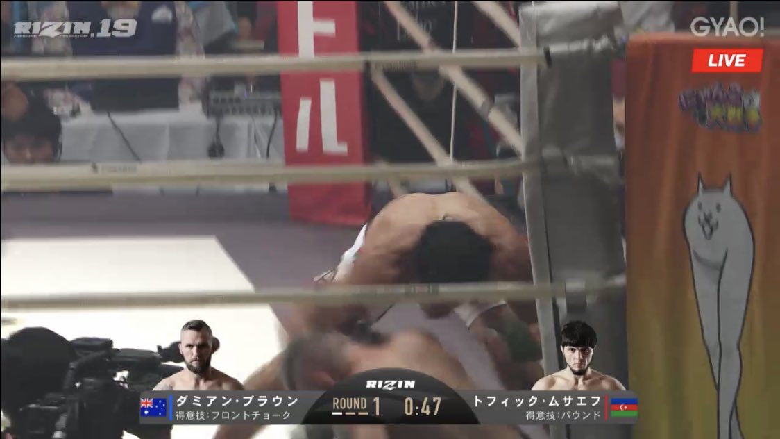 ブラウン vsムサエフ1R ムサエフTKO勝ちくそ強ぇーー#rizin19